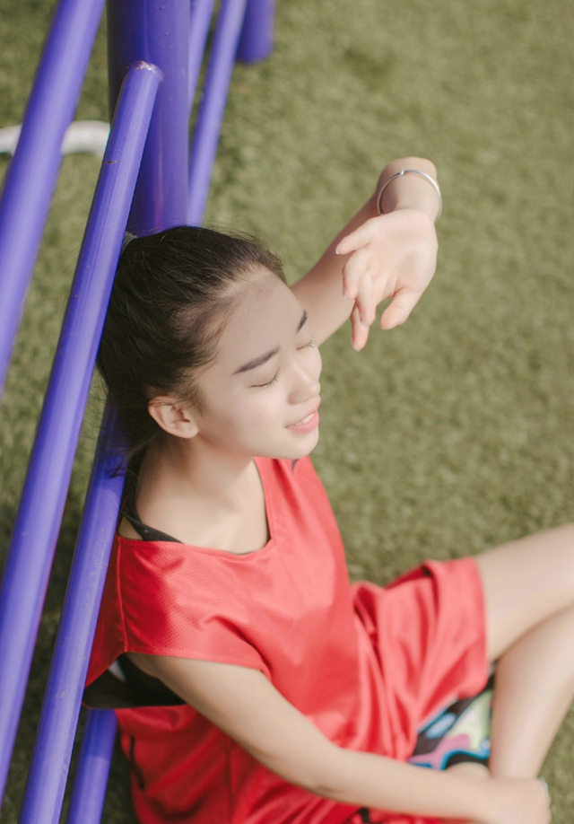 清新甜美操场上养眼美女清纯俏皮可爱唯美写真