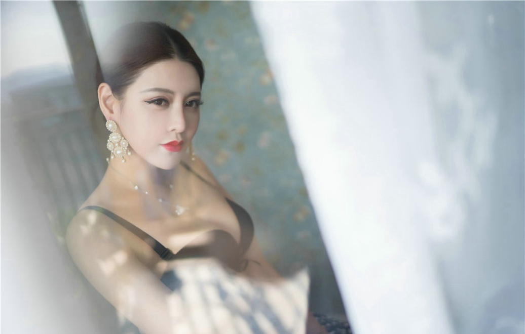 爆乳美腿女神美希子黑色内衣窗台清凉内衣大奶销魂写真